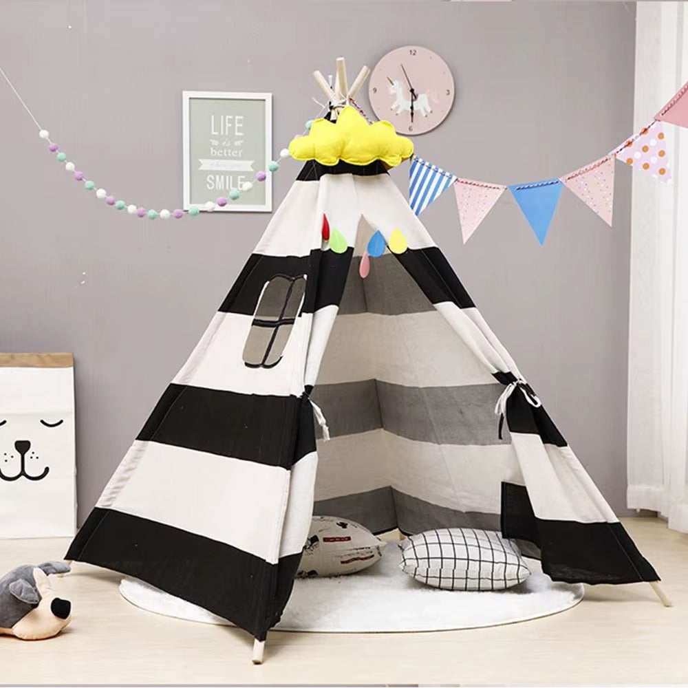 Créez instantanément un refuge magique qui éveille l'imagination de votre fils. Notre tipi garçon noir et blanc apporte cette touche d'élégance qui manquait à sa chambre.